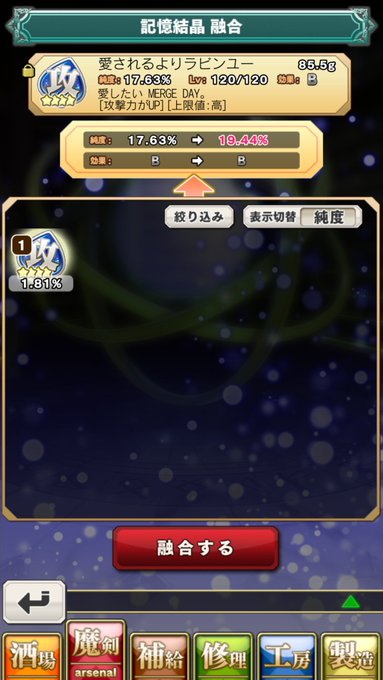 ちゃも ブレ ブレ 記憶結晶 あなたの運勢は 純度100 5個融合 Lvmax クリティカル 約2 5倍 発動 っす 普通に絶望コンプレックスとかのが優秀ですね